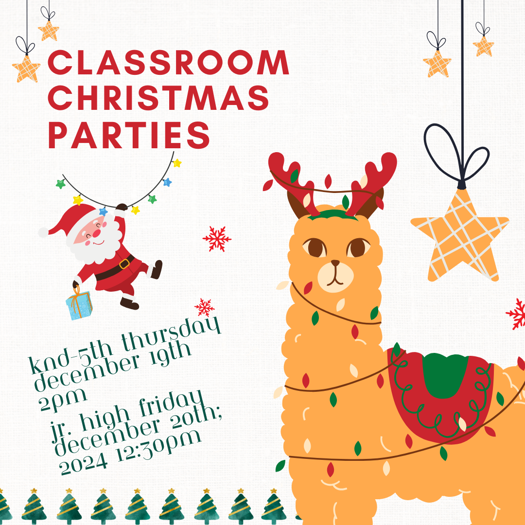 Classroom parties are held in student classrooms. Parties are ran by the party parent assigned by the class teacher. No other children or siblings are allowed.